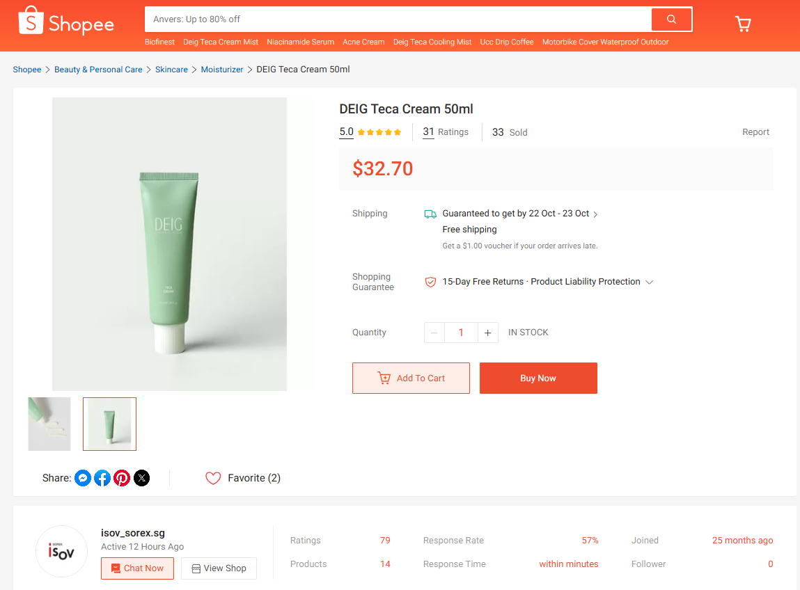 #️⃣ hashtags: #DeigTecaCream #ShopeeSG #ShopeeBeauty #Kbeauty #SingaporeSkincare #SkincareSG #BarrierRepair