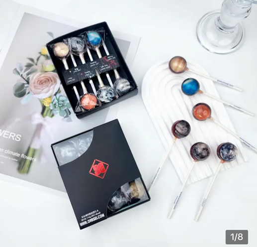 Explore the cosmos with sweetness! 🪐✨ Dive into the joy of the UNIK ORBSEI Planet Lollipop Candy A Set, a unique solar system candy set. Each of the 6 lollipops is crafted by hand, making it a special sugar-free gift for kids and space enthusiasts. It's a delightful treat for all ages! 💖