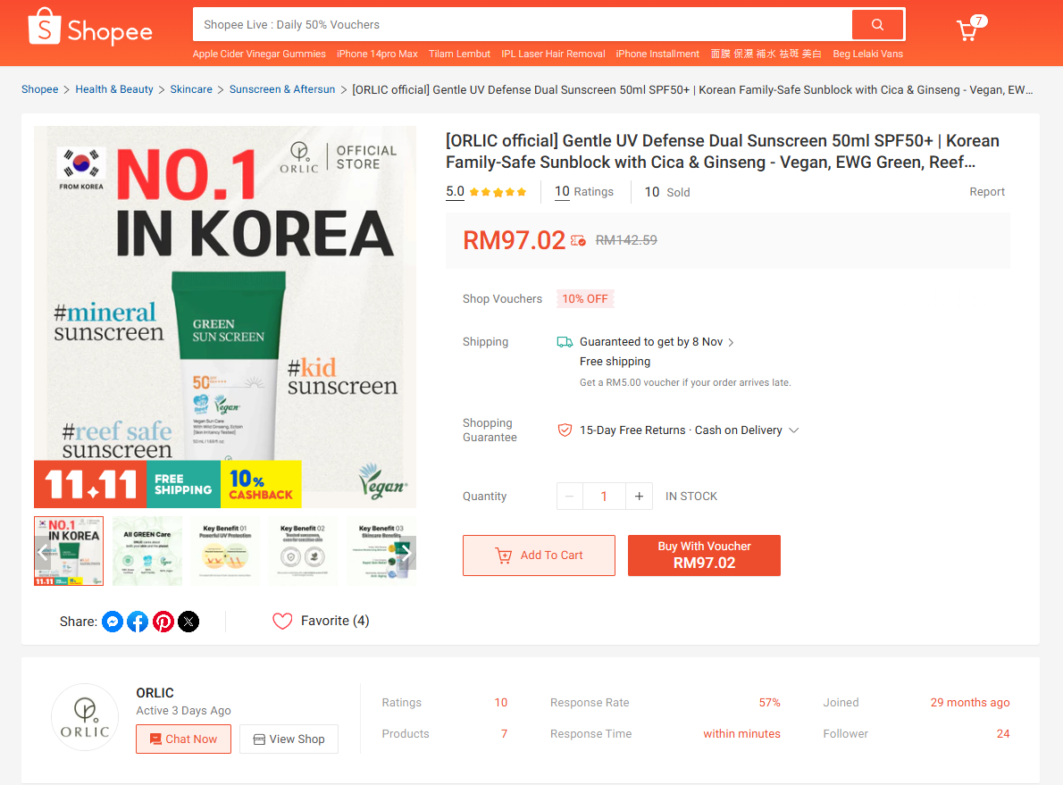 #ORLIC #OrlicSunscreen #KBeauty #KoreanSkincare #ShopeeMY #ShopeeHaul #VeganSunscreen #ReefFriendly #CicaSunscreen #GinsengSkincare #SPF50 #GentleSunscreen #EWGGreen