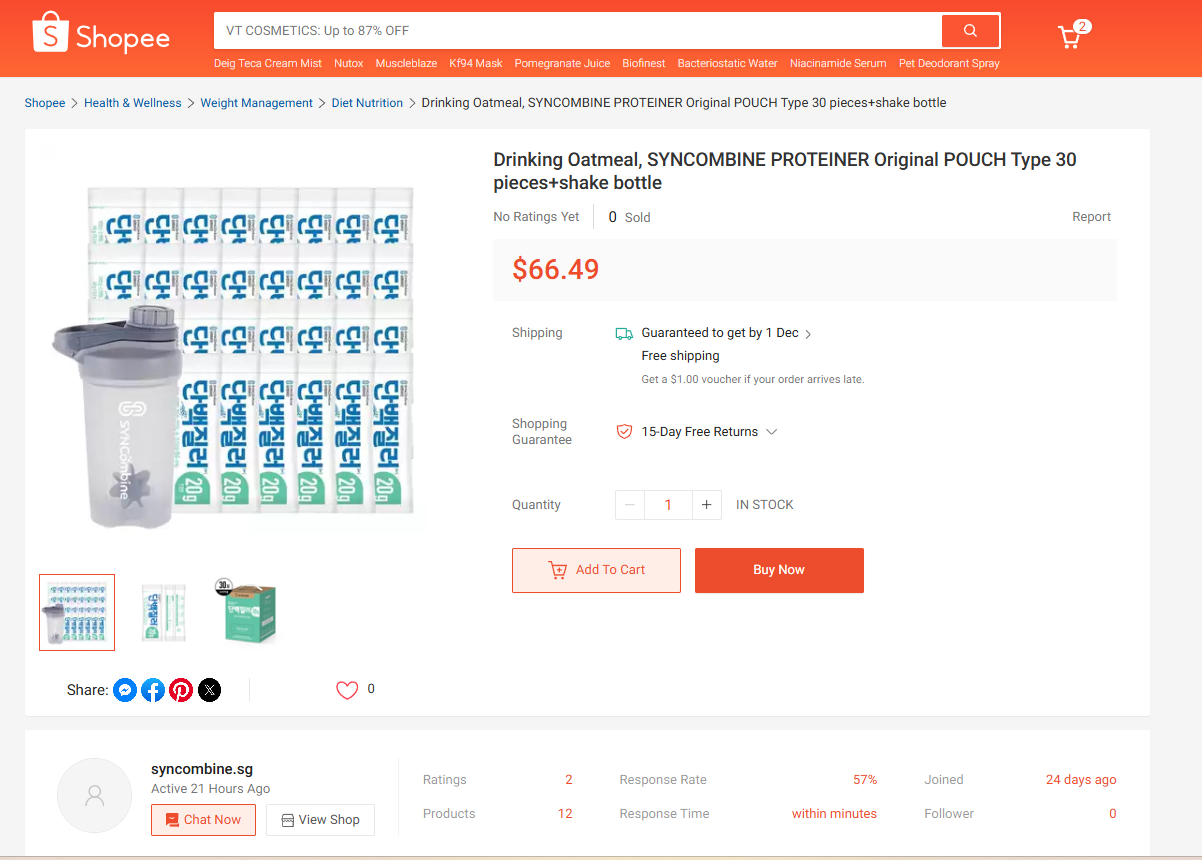 #ShopeeSG #Syncombine #Proteiner #MealReplacement #ProteinShake #HealthyDiet #WeightLossJourney #GymLife #OatmealDrink #HighProtein #KFood