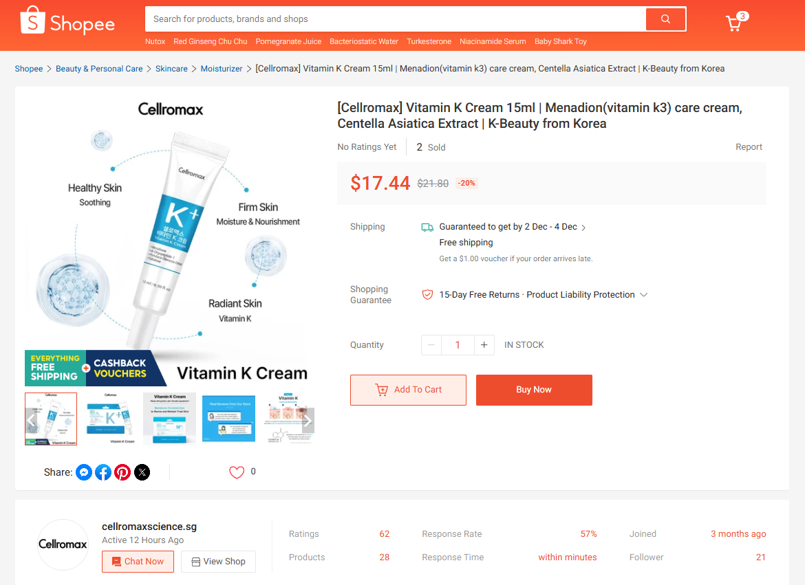 Shopee SG x K-Beauty Vitamin K Cream Reviewer Campaign + SNS Posting