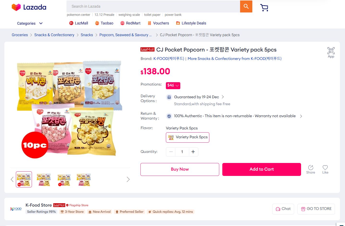 Lazada SG x K-Food Popcorn Variety Pack Reviewer Campaign + SNS Posting