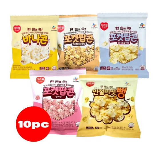 완벽한 간식 시간을 위한 K-Food Popcorn Variety Pack을 만나보세요! 5개입으로 구성된 이 세트는 휴대가 간편한 포켓 사이즈에 다양한 맛의 즐거움을 드립니다. 영화 볼 때나 가벼운 간식이 필요할 때 필수인 한국 스낵을 놓치지 마세요!