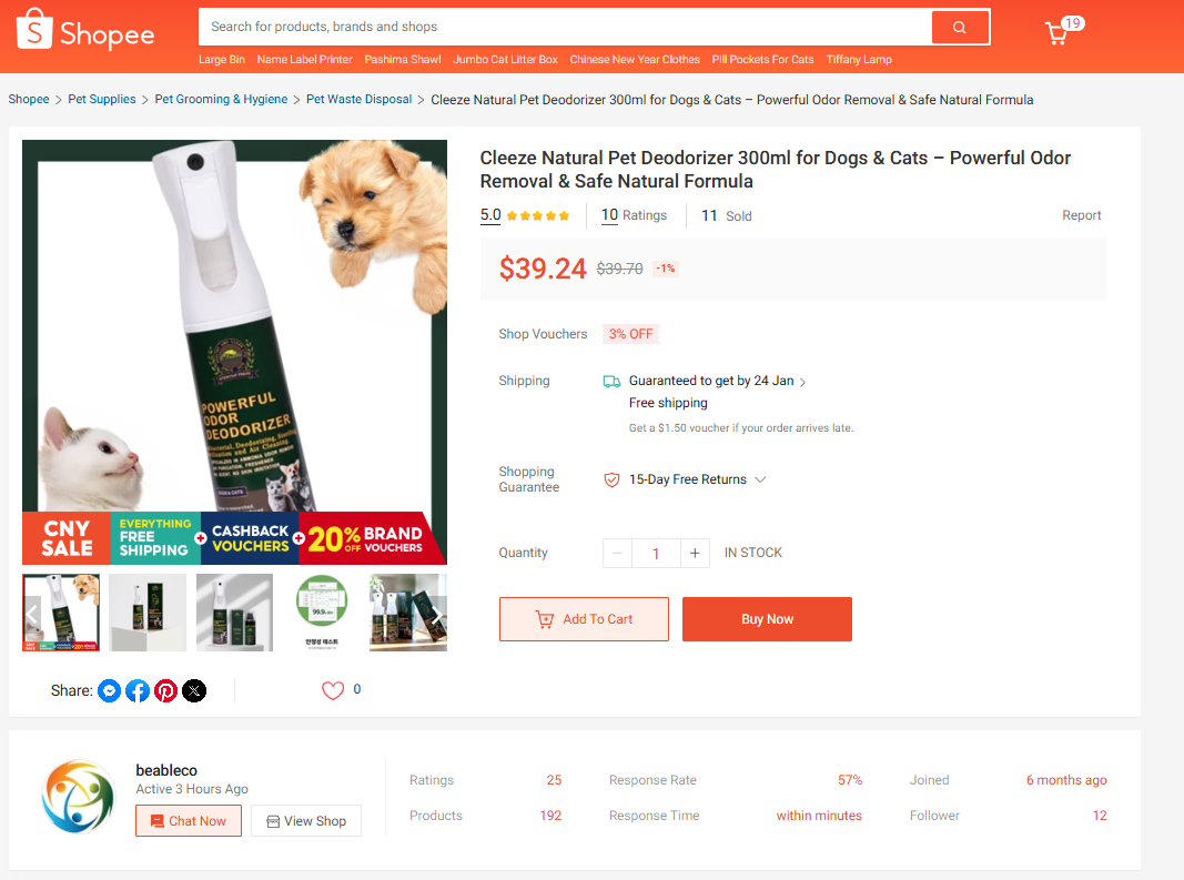 Shopee SG x Premium K-Pet Care Deodorizer Reviewer Campaign
