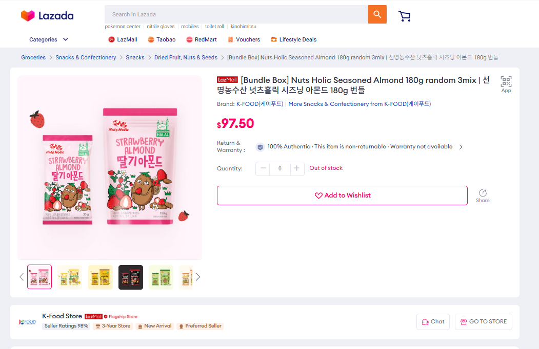 1 ✅[Lazada] Experience the Ultimate Crunch with Premium Seasoned Almonds! (최고의 바삭함! 프리미엄 시즈닝 아몬드 캠페인) 20명 ▶ 선정완료 (주문중)