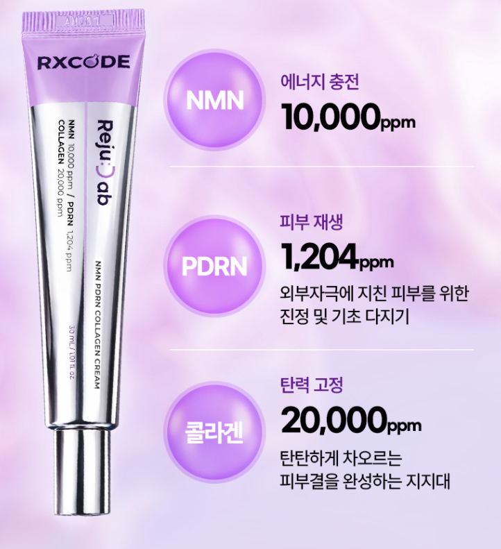 Intro: 나이가 들수록 피부 활력을 잃어가는 것 같으신가요? 이는 단순한 수분 부족이 아닌 피부 세포 에너지인 NAD+가 감소하기 때문입니다. 피부 깊숙이 침투하여 NAD+ 생성을 돕는 NMN 10,000ppm이 함유된 고밀도 안티에이징 크림을 소개합니다. PDRN 1,204ppm과 콜라겐 20,000ppm이 더해져 완벽한 피부 재생과 탄력 고정을 돕습니다. 🧪💧