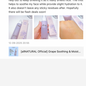 [Shopee] [allNATURAL Official] Grape Soothing & Moisturizing Daily Face Mist 100ml | with Brightening Effect